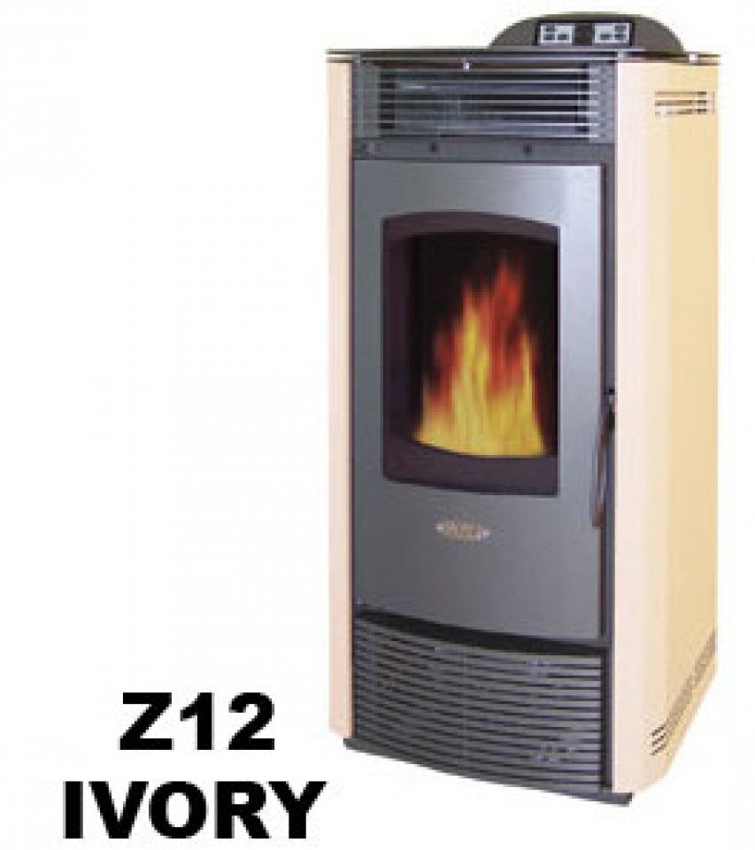 Aceste seminee pe peleti Z12 au carcasa din otel, eficienta de 89% si putere termica globala de 12 kW.